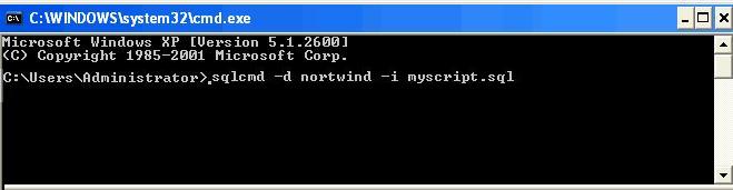 -i is followed by the path of the file of the script file. For example, d:\script.sql
