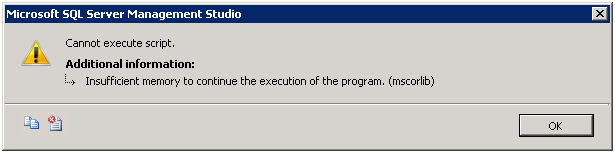 Run a large SQL script in MS-SQL server | Solution: Insufficient memory to continue the execution of the program