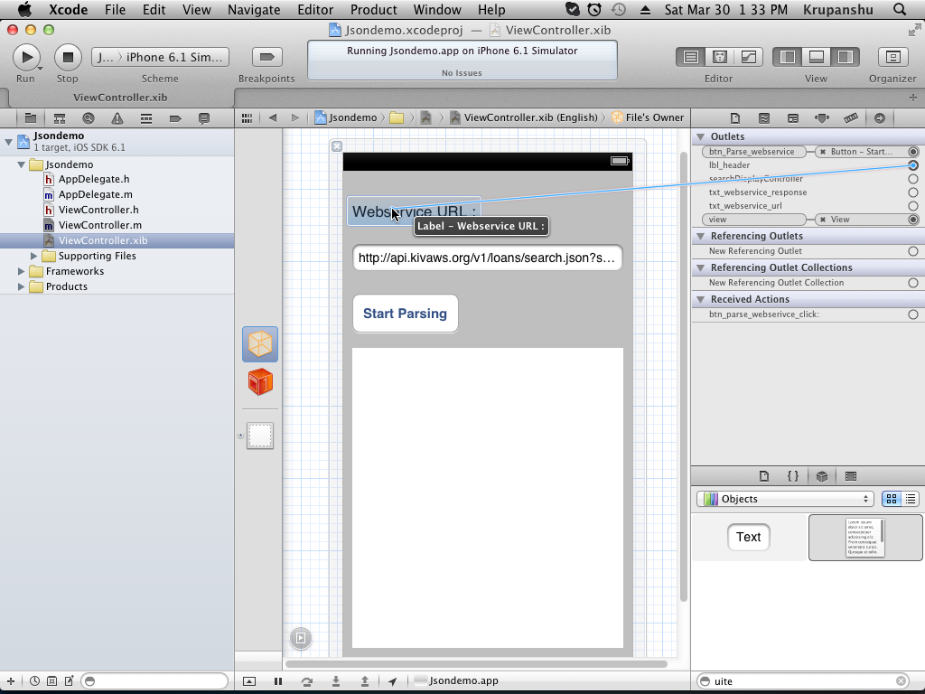 1. Drag and Drop UILabel and modify its text to “Webservice URL”